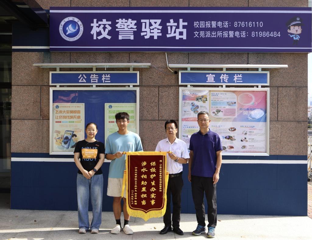 原来,这位同学是来自统数学院的2025级新生。9月19日晚,该同学路过桥面不慎手滑,新买的贵重手机掉落至我校河道中,他随即联系校警驿站求助。我校安保部值班老师与校警驿站处警人员第一时间赶往现场,勘察手机掉落点河道地形,判断手机掉落可能区位。虽然晚上手机掉落处寻物视线受到很大限制,但安保部值班老师和处警人员急学生之所急,在做好安全防范措施后迅速进入河水中,用双手在水面下进行细致排摸,经过近1个小时的不懈努力,最终将该生手机从河道捞出。于是,就出现了文中开始的一幕,学生表示:“十分感谢安保部和校警驿站的各位老师,让我初入校园便感受到了宁工大家庭的温暖,体会到安保部‘竭诚为师生服务’的宗旨不是虚假的口号。”