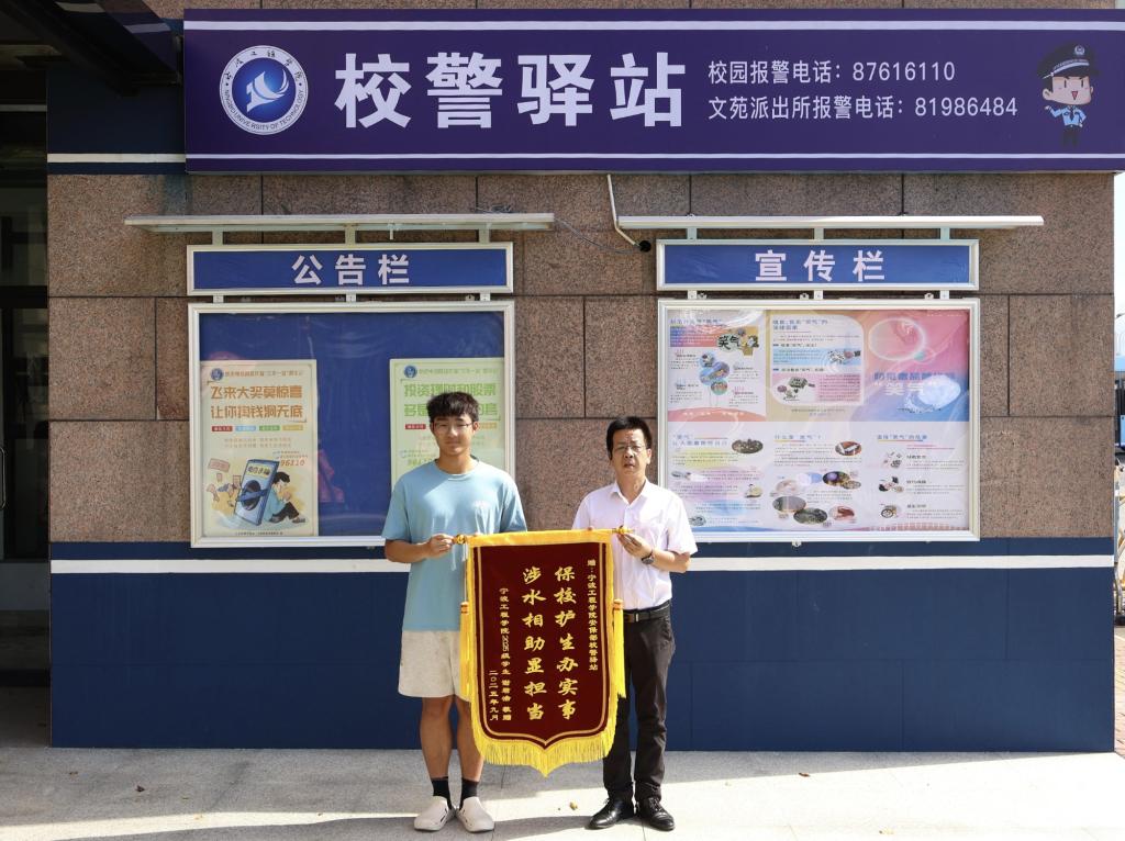 校园新闻网讯 近日,我校校警驿站迎来了一位“特殊”的同学,他神情激动,双手捧着一面锦旗,递给校警驿站工作人员,不停地表示着感谢,这是怎么回事呢?